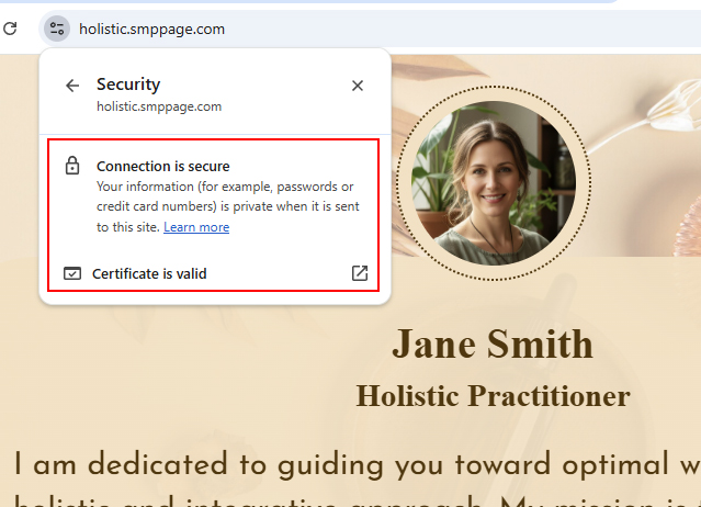 All sites are secure by default. We generate an SSL certificate automatically and served over HTTPS.